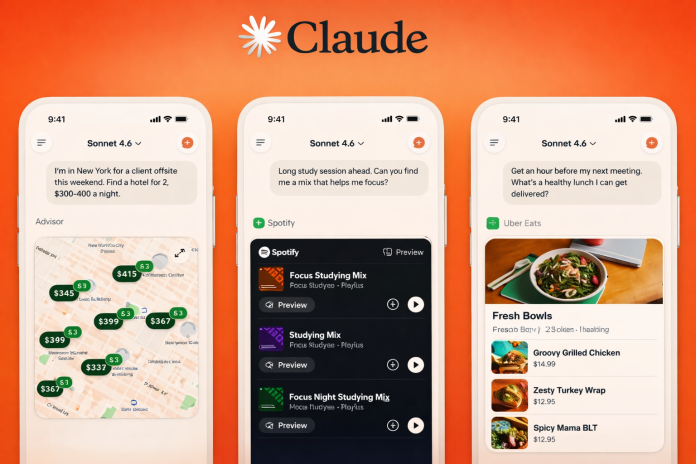 Claude is evolving beyond a conversational assistant into a task-oriented AI interface, with new integrations across platforms like Spotify, Uber, Tripadvisor, Booking.com, and Instacart.
